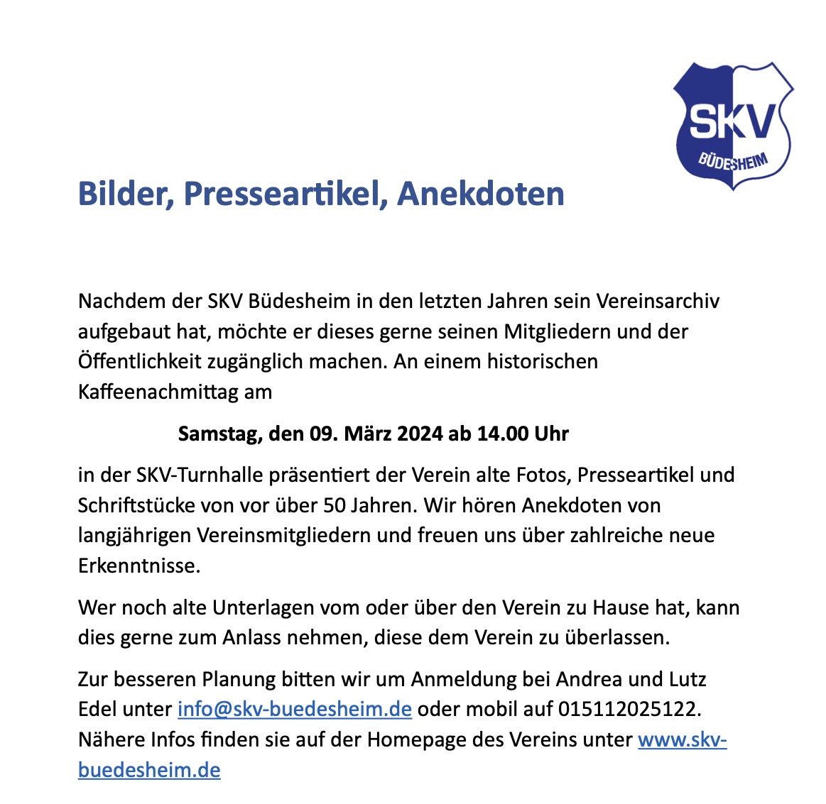 Das Blasorchester Büdesheim ist eine Abteilung des SKV Büdesheim e.V.